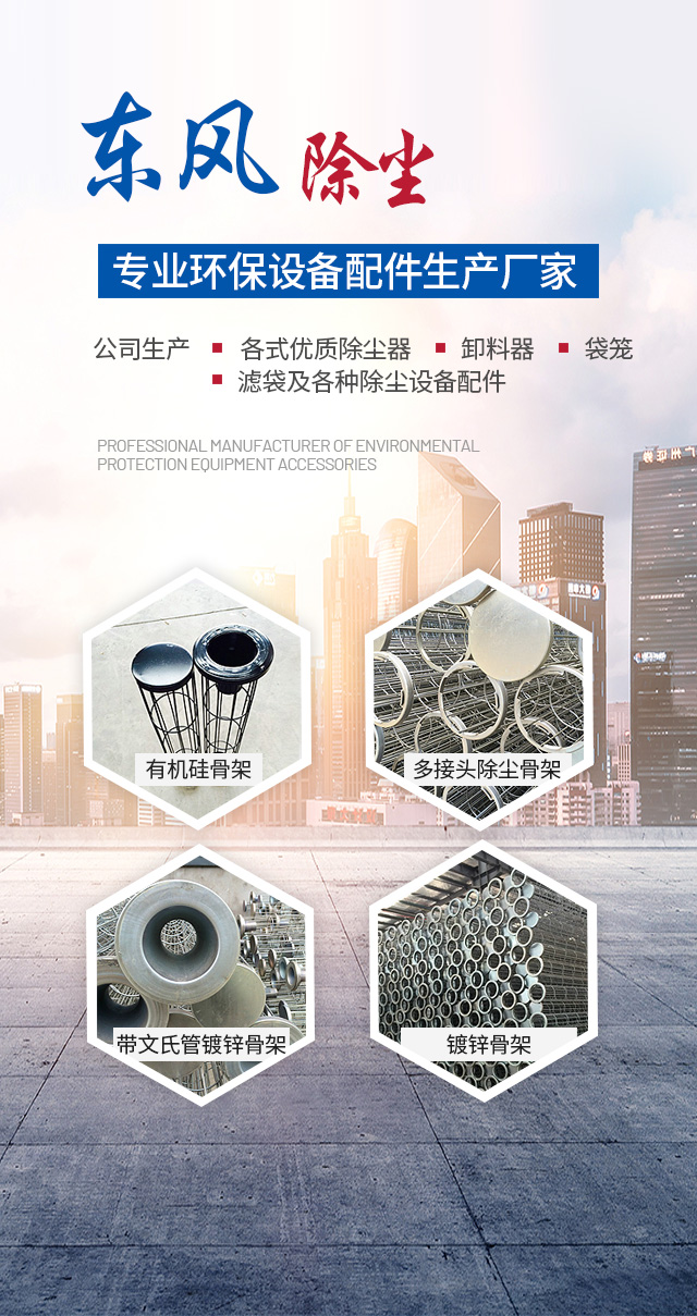 東風(fēng)產(chǎn)品 品質(zhì)保證主要產(chǎn)品: 骨架﹙袋籠﹚ / 濾 袋 / 卸料器﹙卸灰閥﹚ / 除塵器 / 除塵設(shè)備配件